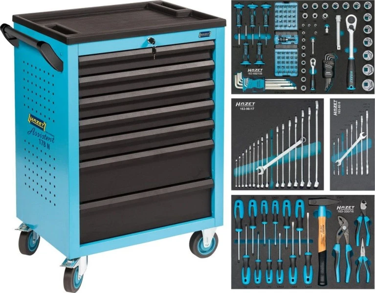 Met deze Hazet gereedschapswagen haal je een complete toevoeging aan jouw werkplaats in huis. De wagen is voorzien van vijf ondiepe en twee diepe laden en is voorzien van grotere wielen voor meer soepelere verplaatsing. En wordt geleverd met verschillende soorten gereedschap in diverse uitvoeringen en maten. Door de dubbele vergrendeling, zowel via cilinderslot als met twee kniksleutels, berg je jouw gereedschap veilig weer op. Als je het gereedschap vervolgens weer wilt pakken, kan dit heel makkelijk door de 100% uittrekbare laden.