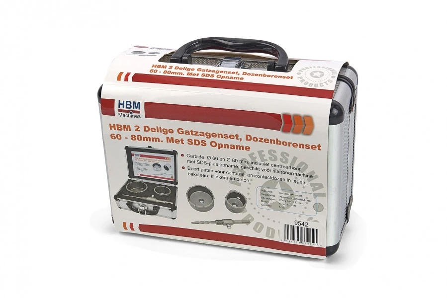 Over de HBM 2 Delige Gatzagenset, Dozenborenset 60 – 80mm Met SDS Opname