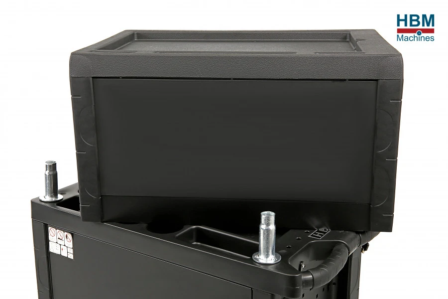 De HBM vier laden gereedschap opzetkast in de kleur blauw kan je apart gebruiken, maar je kan hem ook met de twee bijgeleverde pinnen vastmaken op de HBM gevulde gereedschapswagen. De opzetkast heeft vier laden waarin je allerlei gereedschappen kwijt kunt. Elke lade kan je apart vergrendelen, zodat je je spullen veilig opbergt.