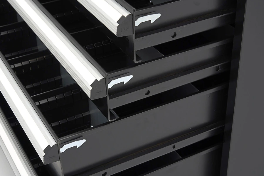 Een goede gereedschapskast is onmisbaar wanneer je vaak klein gereedschap en tools nodig hebt. Deze gereedschapskast heeft per lade bakjes in verschillende afmetingen, namelijk 40 keer bakjes van 75 x75 mm, 20 keer bakjes van 75 x 150 mm, 10 keer bakjes van 150 x 150 mm, 16 keer een gleufschot en 40 keer een tussenschot. Dit betekent dat je alle ruimte hebt om bitjes, boortjes, ducktape, ijzerdraad, moertjes, spijkers en alles wet je nog meer nodig hebt overzichtelijk op te bergen. Berg al je kleine klusspullen professioneel op in deze HBM 6 Laden Profi Gereedschapskast 88 x 58 x 80 cm. Deze gereedschapskist heeft zes lades met een maximale belasting van 100 kg per lade.