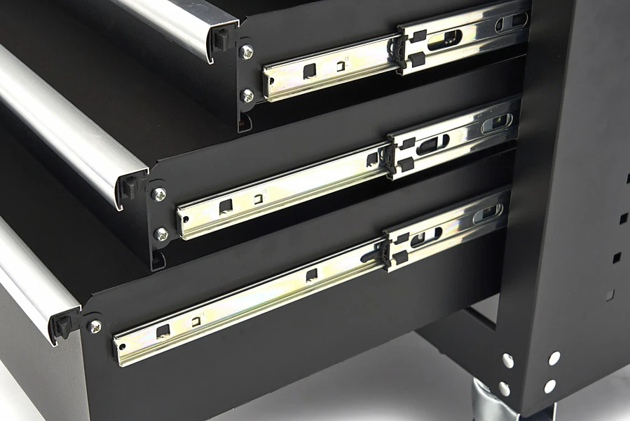 Moet je – als hobbyist of beroepsmatig – relatief vaak gereedschappen verplaatsen? Dan kan een gereedschapswagen handig zijn. Het scheelt je een aantal keer heen en weer lopen én je hoeft niet te sjouwen. Deze wagen van HBM beschikt over zeven lades waarin je behoorlijk wat klein gereedschap kwijt kunt. Zowel rechts als links kan aan de buitenkant op een ophangwand gereedschap geplaatst worden. Daarnaast hebben alle laden veiligheidsblokkering zodat ze niet los kunnen schieten. En wordt de gereedschapswagen geleverd met vier draaibare wielen waarvan twee met rem.