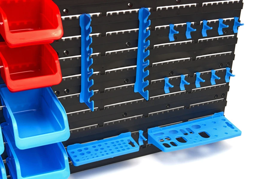 Wil je graag een overzichtelijke werkplaats? Met de HBM 43 delige gereedschapswand met opbergrekken en -bakken is je gereedschap eenvoudig te ordenen. De gereedschapswand plaats je eenvoudig aan de muur en is onmisbaar in een garage, tuinhuisje, werkplaats of hobbyschuur. Bij uitstek geschikt voor enthousiaste klussers en grotere werkplaatsen.