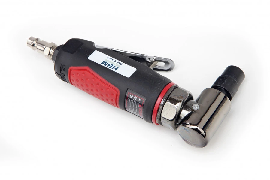 De HBM Haakse Stiftslijper is voorzien van een lichtgewicht aluminium huis met bi-color softgrip en het model heeft een zwart geanodiseerde haakse kop. Dankzij deze softgrip ligt de haakse stiftslijper erg comfortabel in de hand en je werkt ook nog eens met de nodige grip. Het model heeft een gewicht van 530 gram en is voorzien van een erg praktische veiligheids bedieningshendel. Dankzij de hendel is de stiftslijper makkelijk te bedienen tijdens het project en je sluit de stiftslijper binnen een paar seconden aan op een compressor slang.