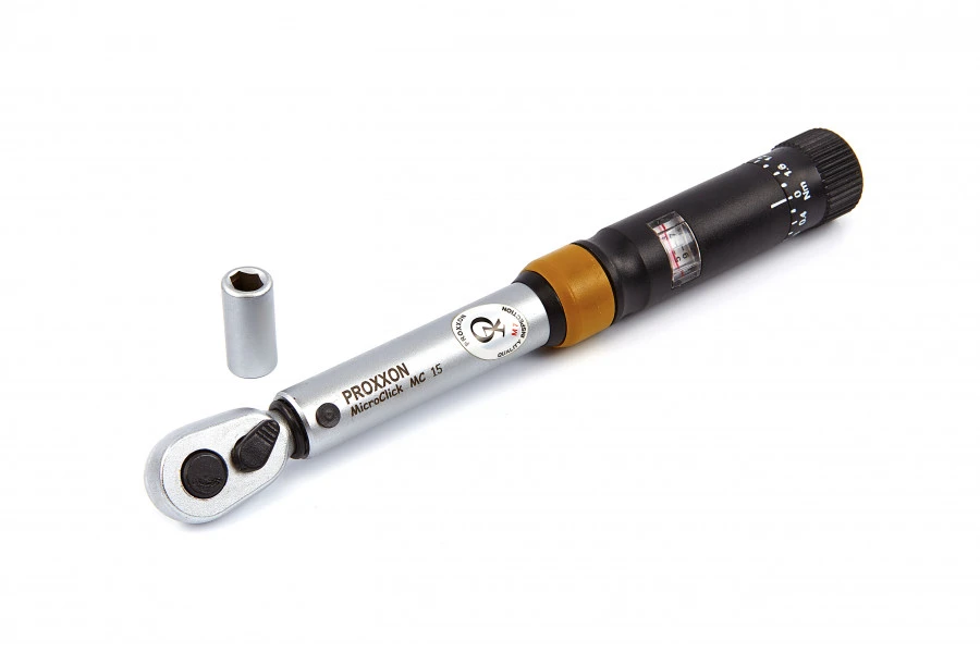 Ben je op zoek naar een momentsleutel? Dan is dit exemplaar van Proxxon misschien wel precies waar je op zoek naar bent. Deze zogenoemde MicroClick-sleutel heeft een opname van 1/4” en een druk van 3 tot 15 newtonmeter. De goed leesbare schaal zorgt ervoor dat je gewenste draaimomenten eenvoudig kunt instellen. Draai hiervoor gewóón aan de gekartelde ring aan het uiteinde van de greep en voilà – hij is klaar voor gebruik. De sleutel wordt geleverd met een bithouder voor een 1/4”-aansluiting.